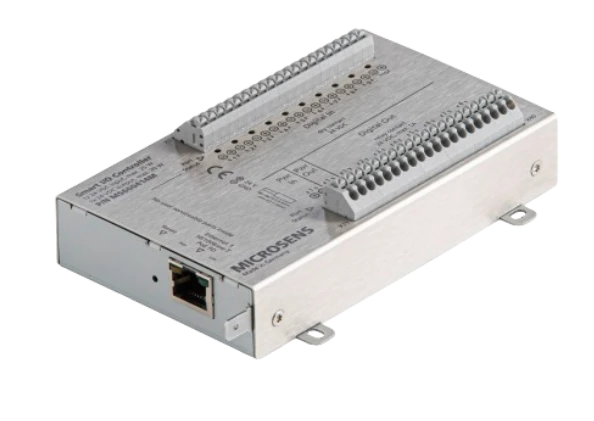 The MICROSENS Smart IO/ Controller is designed for the acquisition of sensor signals as well as for the control and monitoring of automation actuators. Typical areas of application are the intelligent control and automation of electrical devices and actuators for building automation.
